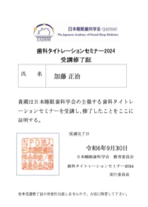 日本歯科理工学会デンタルマテリアルズシニアアドバイザー 2部門認定(歯科接着器材、予防歯科器材)